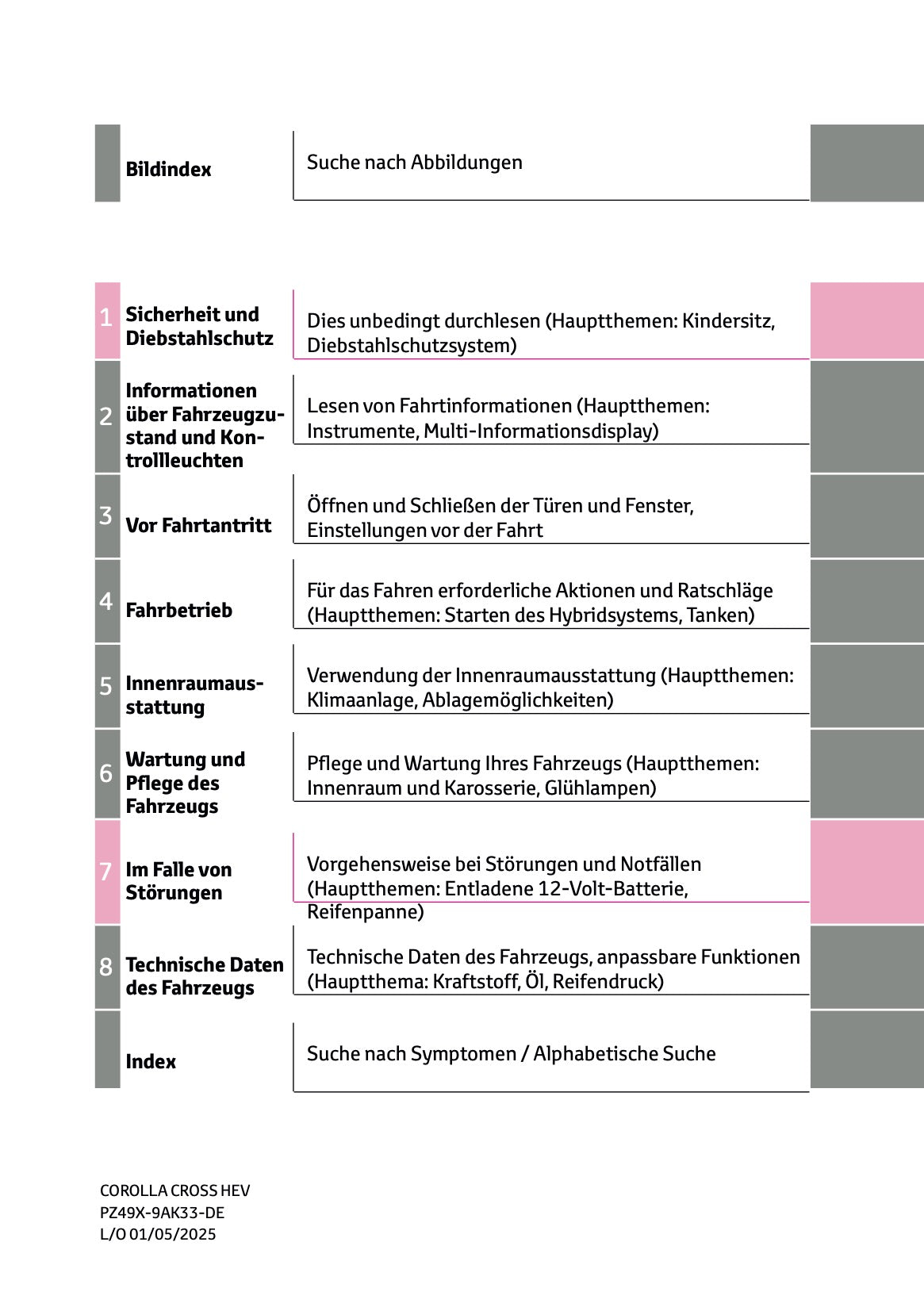 2025 Toyota Corolla Cross Hybrid Bedienungsanleitung | Deutsch