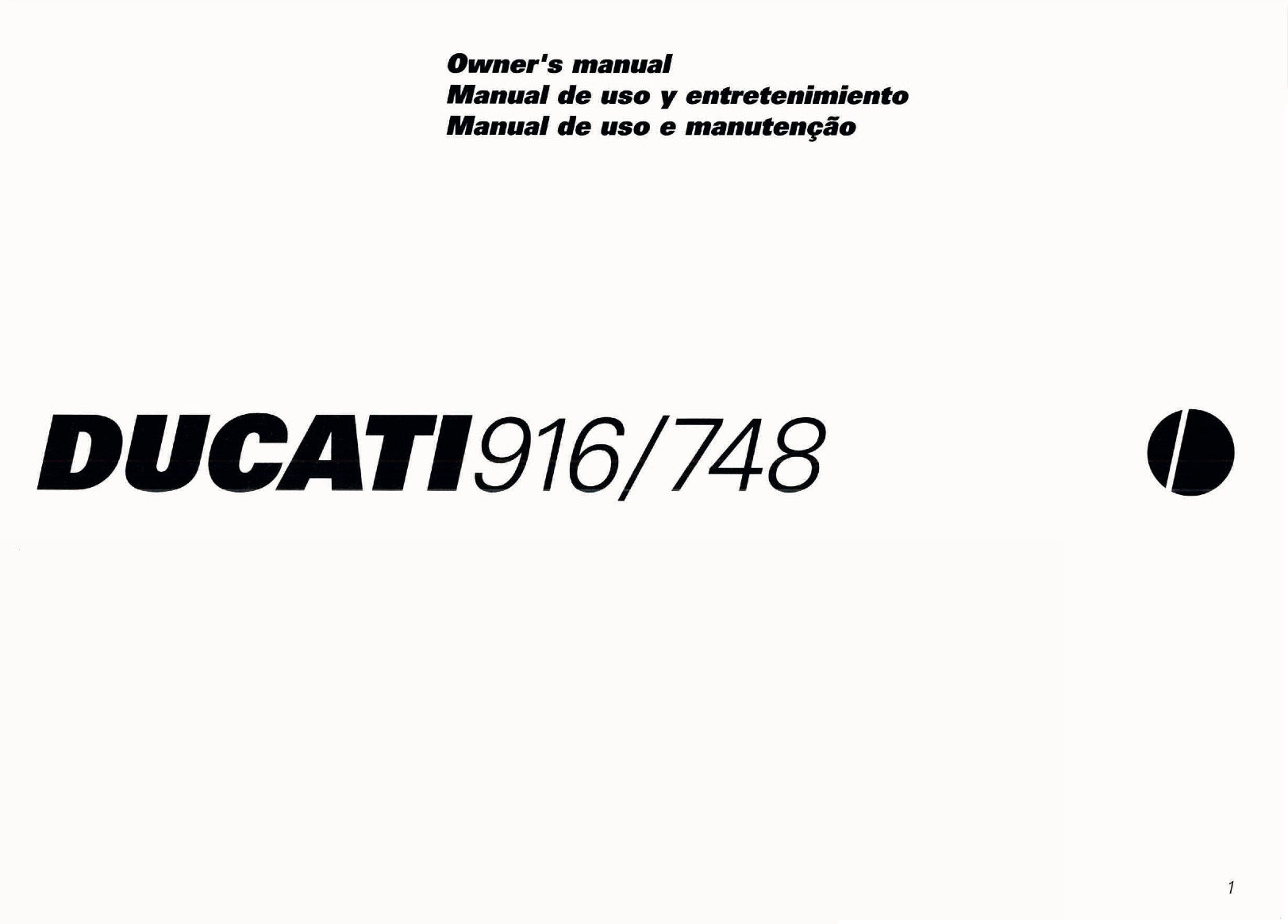 1998 Ducati 916/748 Owner's Manual | English
