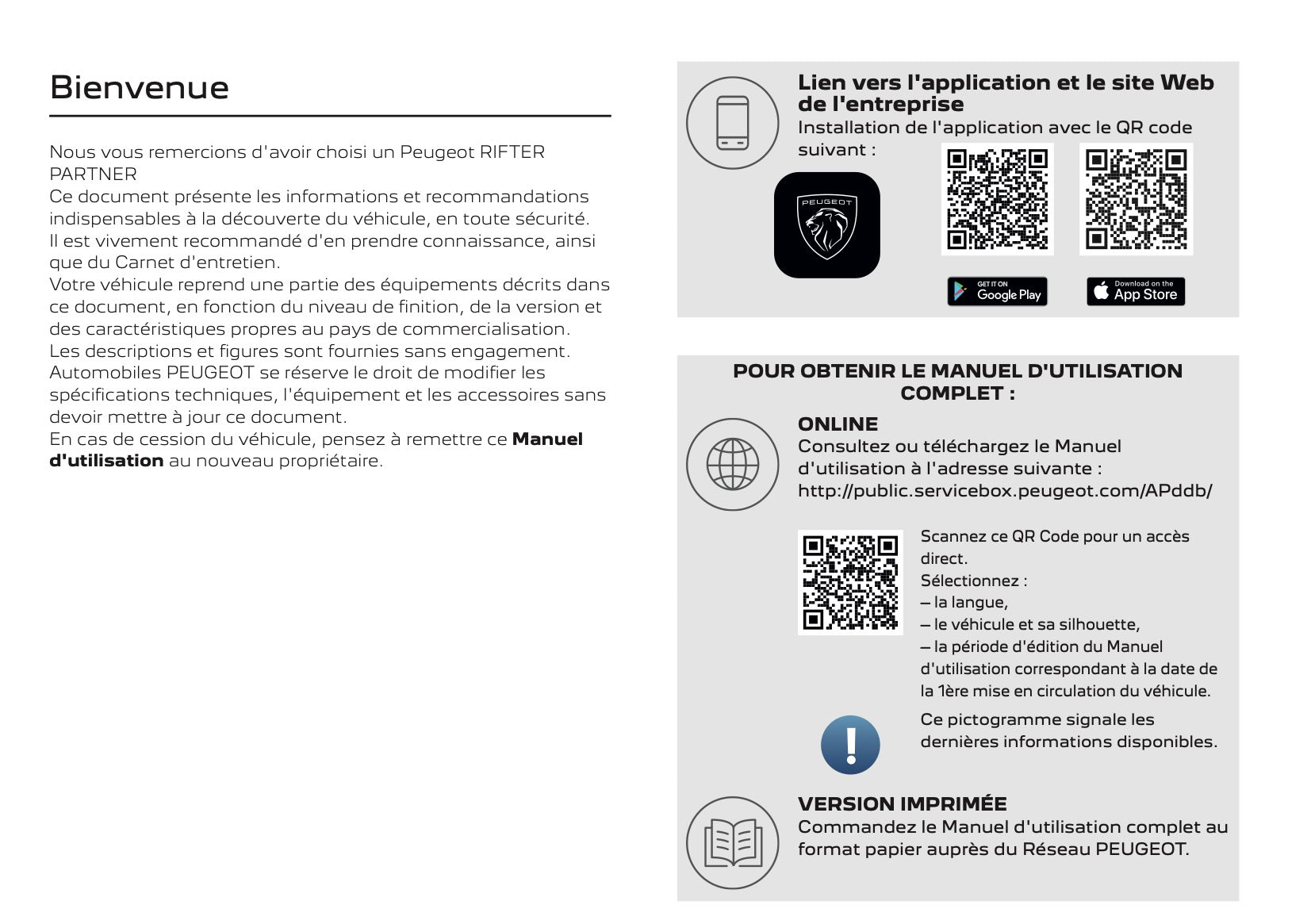 2025 Peugeot Rifter/Partner Manuel du propriétaire | Français