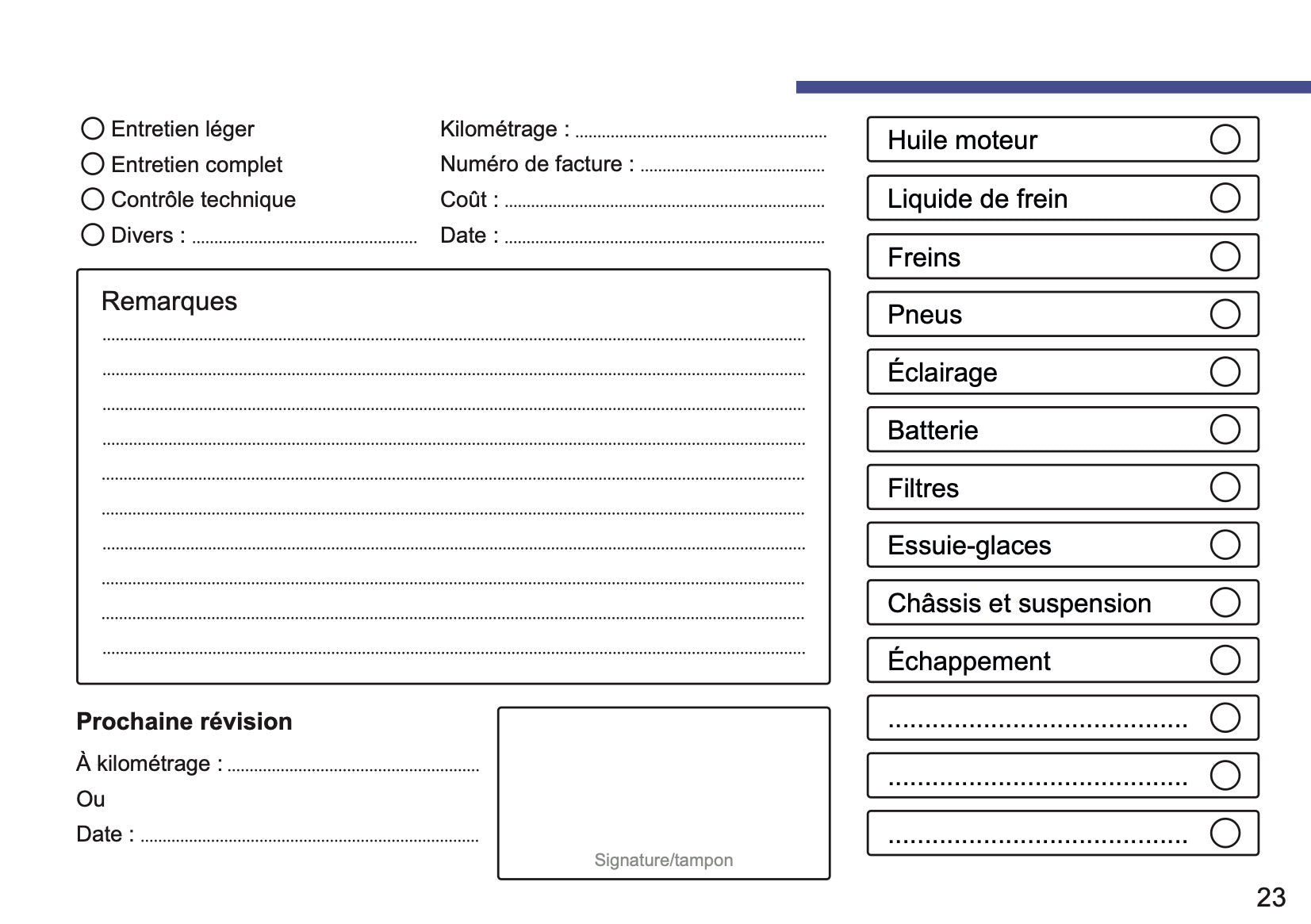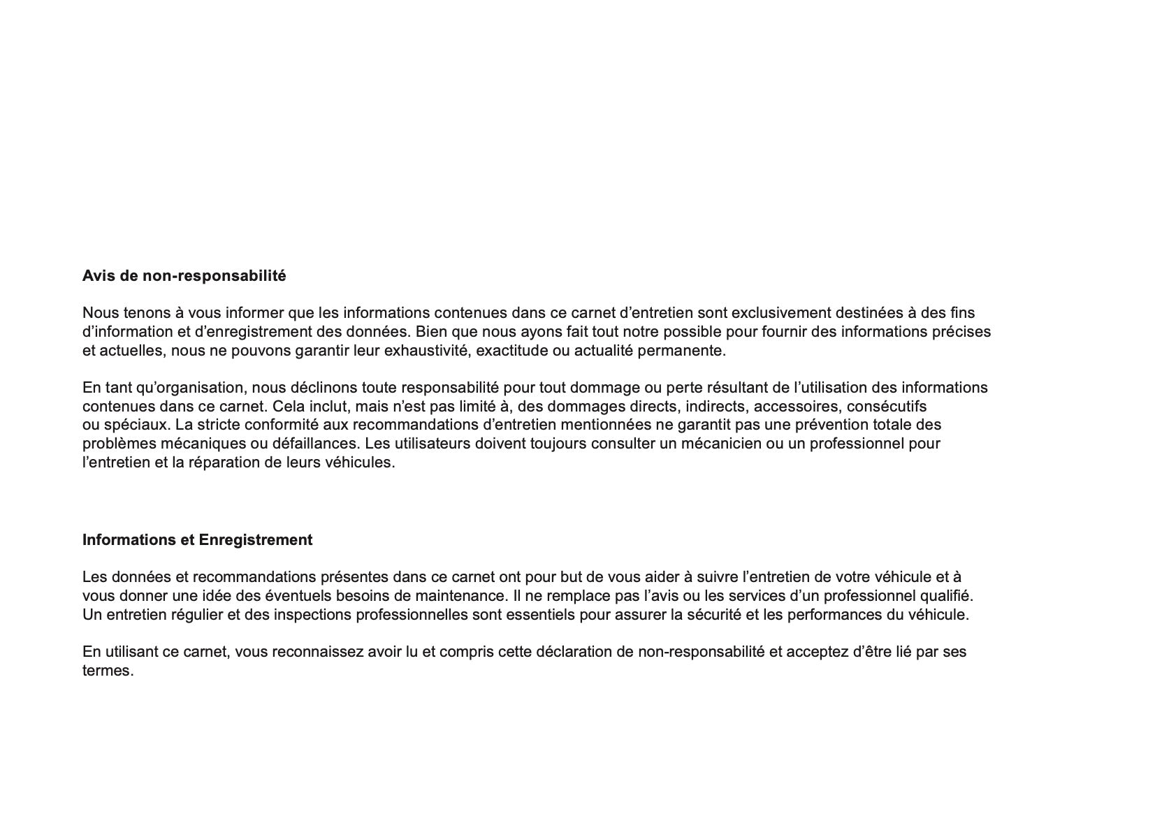 Mini Livret d'entretien | Français