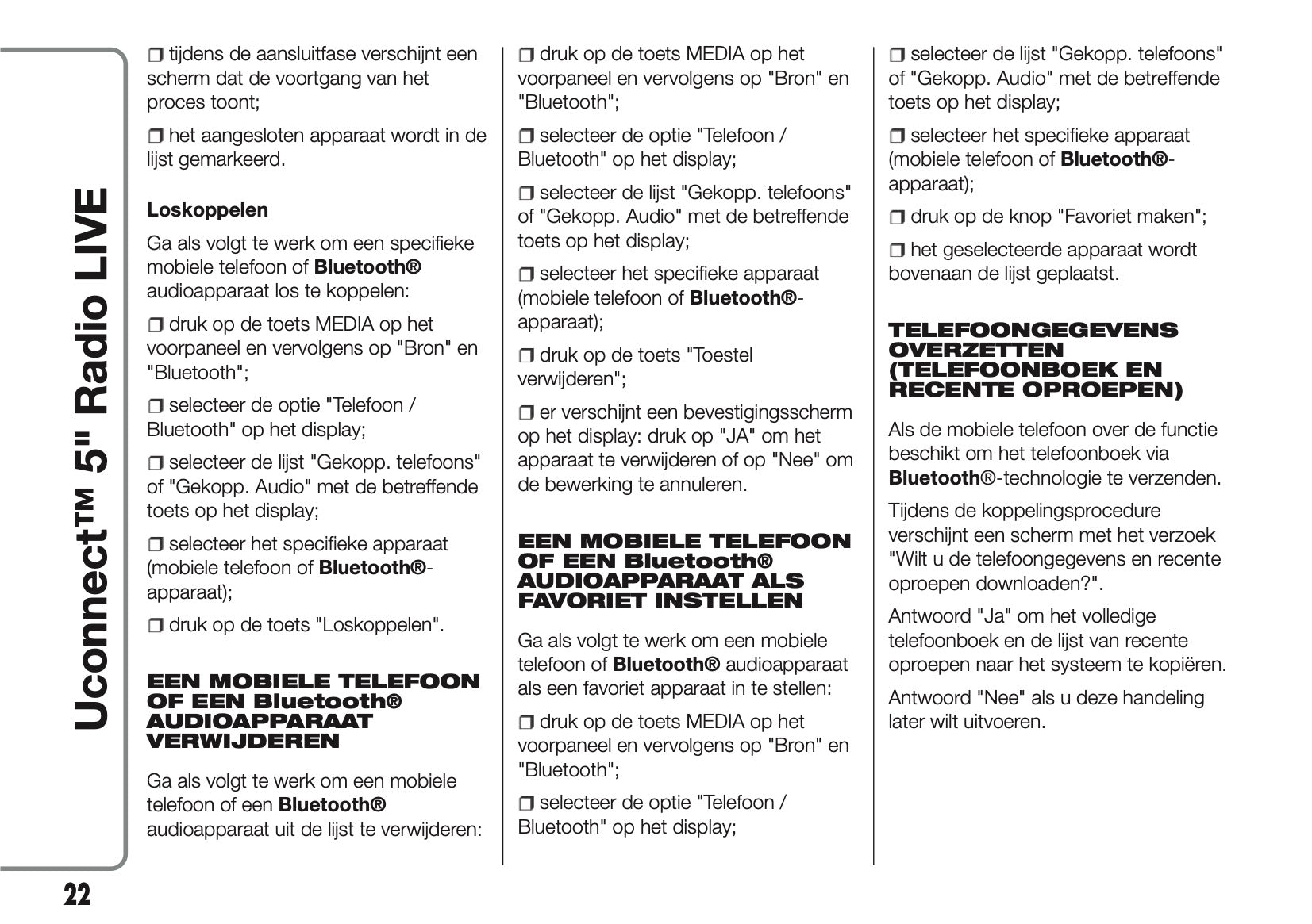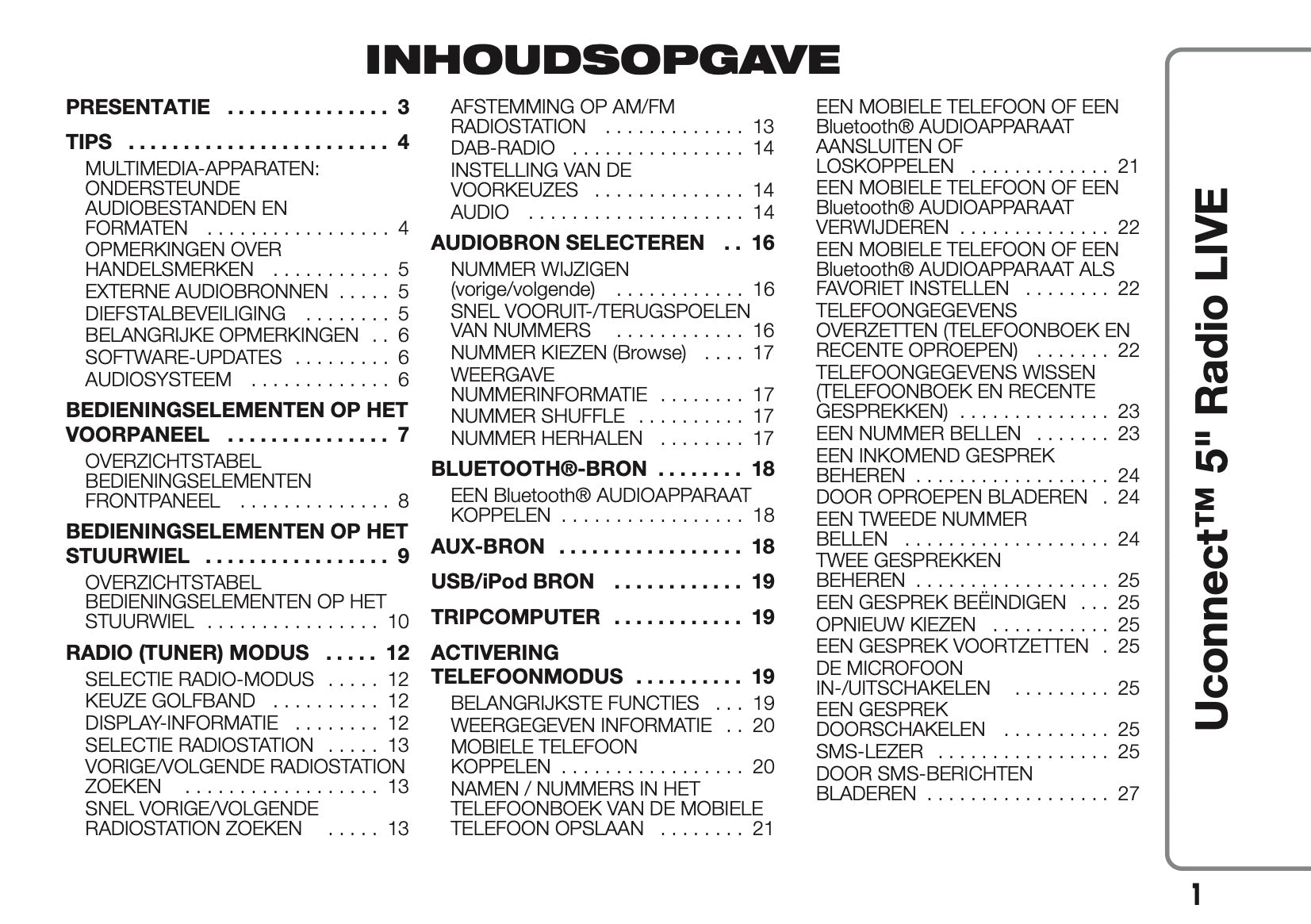 Deze 56 pagina's tellende Nederlandstalige infotainment handleiding, op aanvraag afgedrukt, biedt uitgebreide instructies voor uw Abarth 500/595/695 Uconnect 50 Radio.