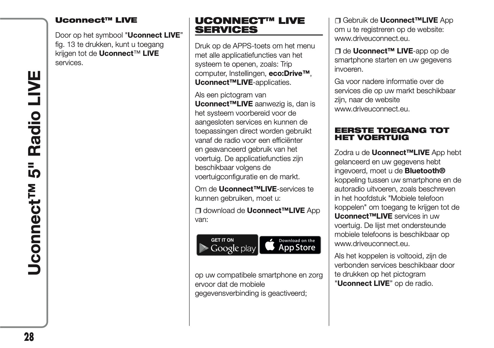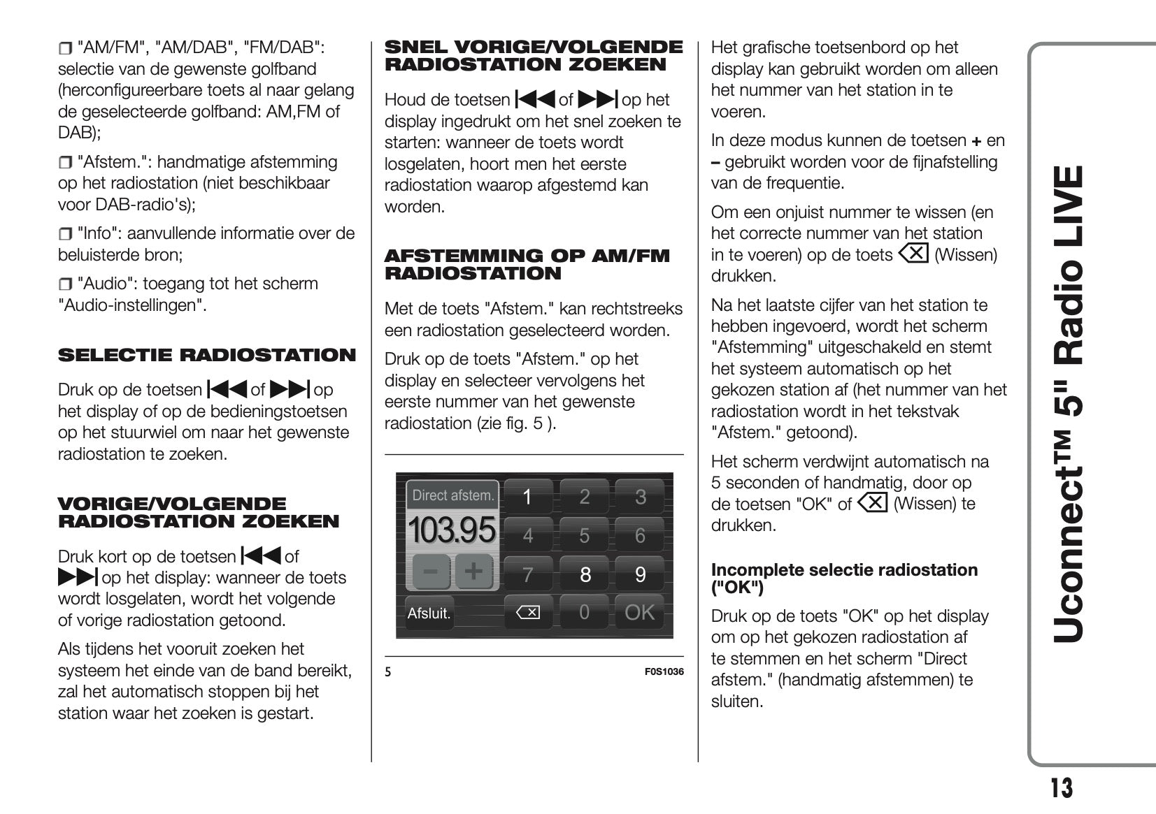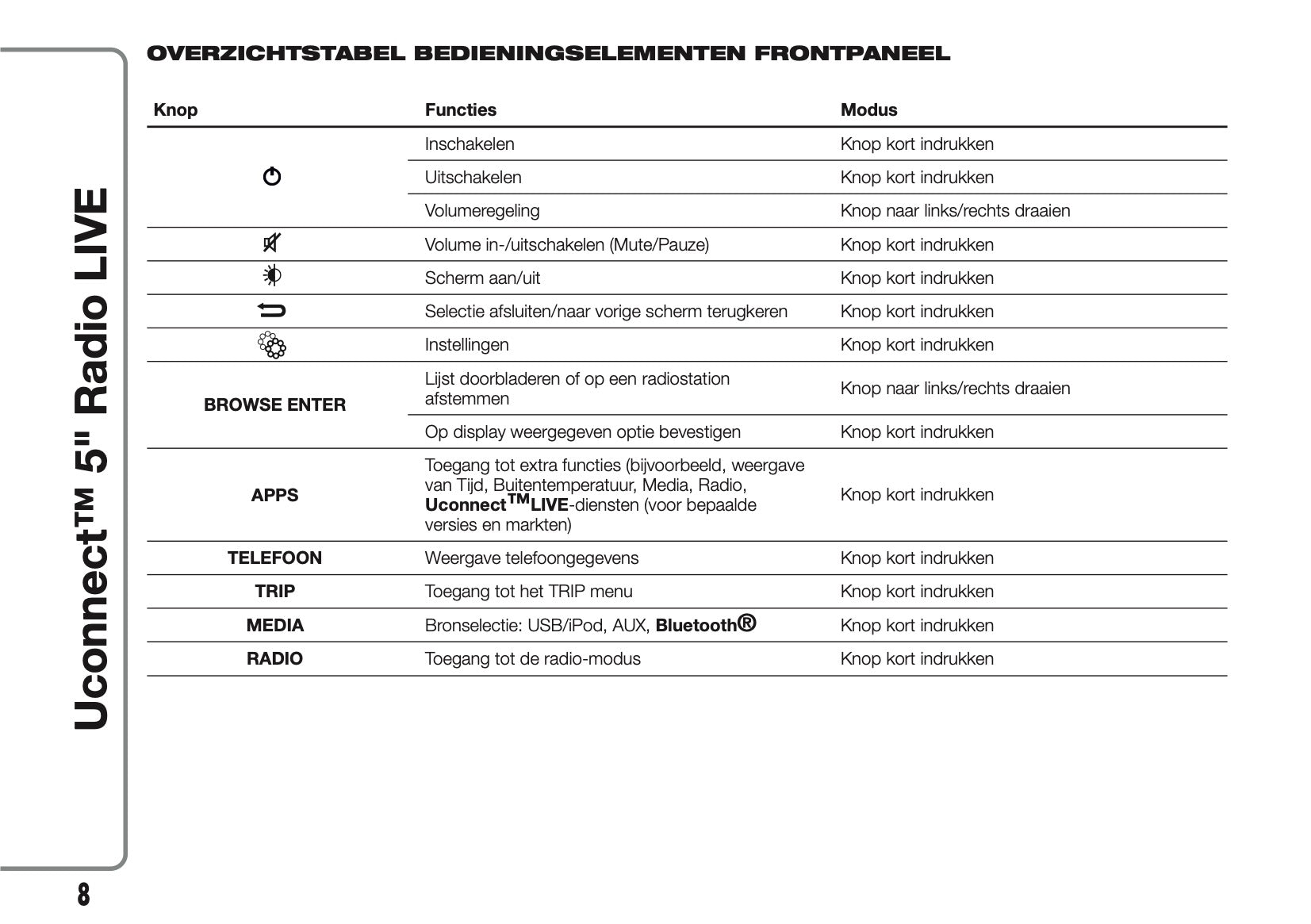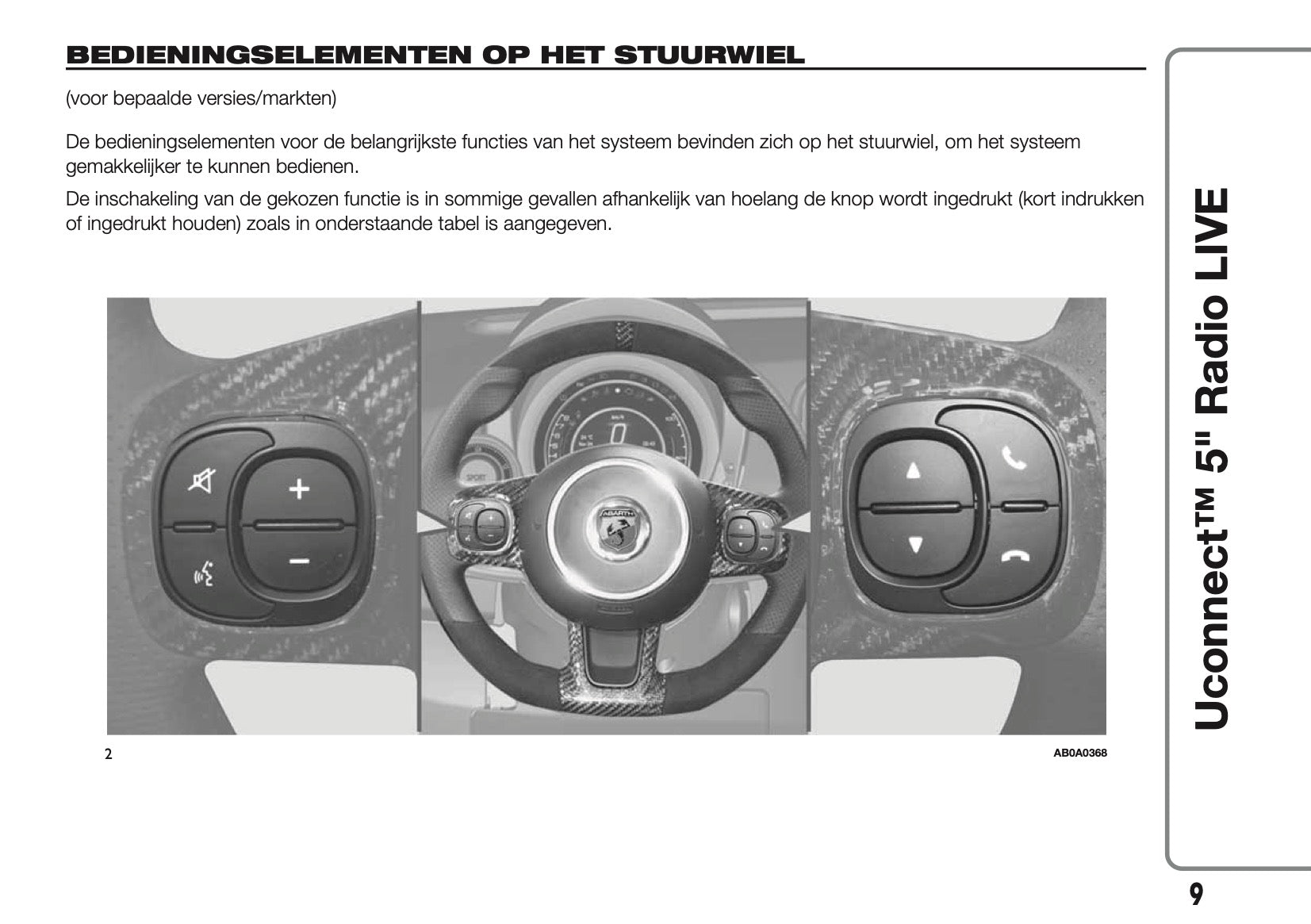 2017-2018 Abarth 500/595/695 Uconnect 5.0 Radio Handleiding | Nederlands