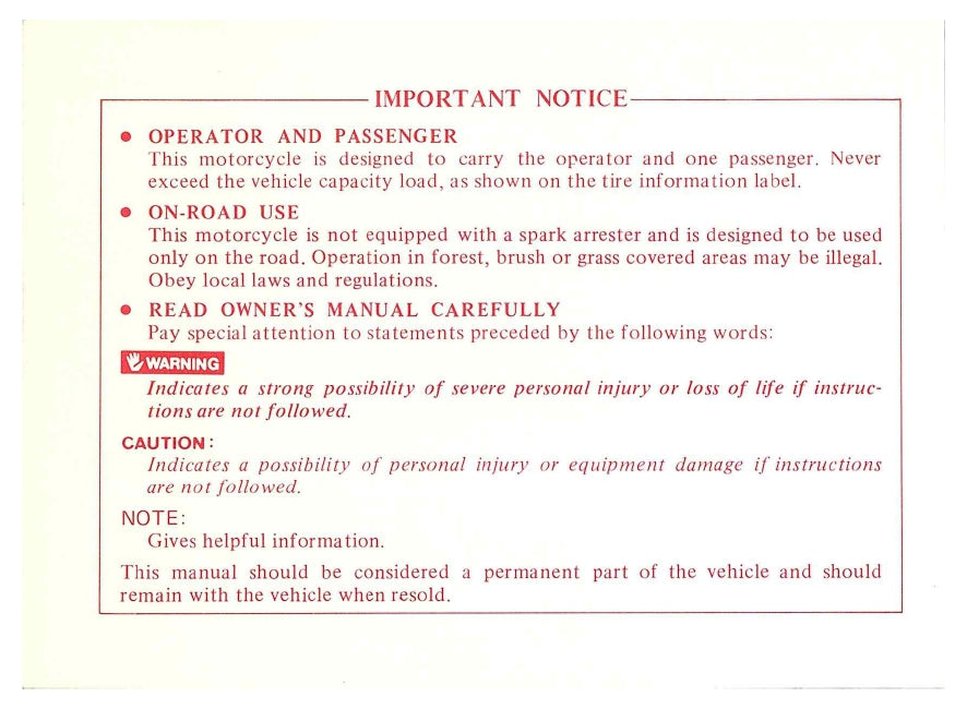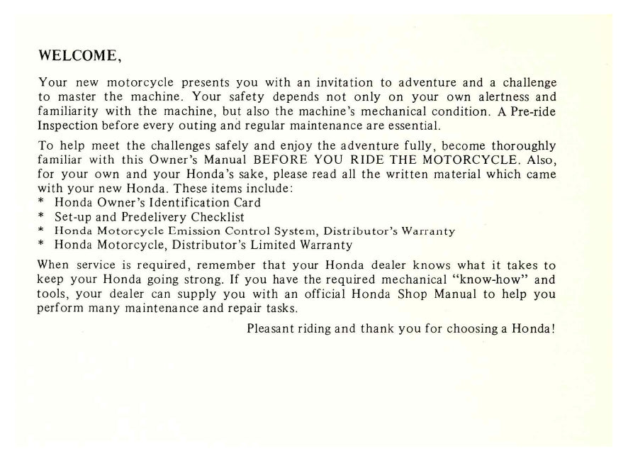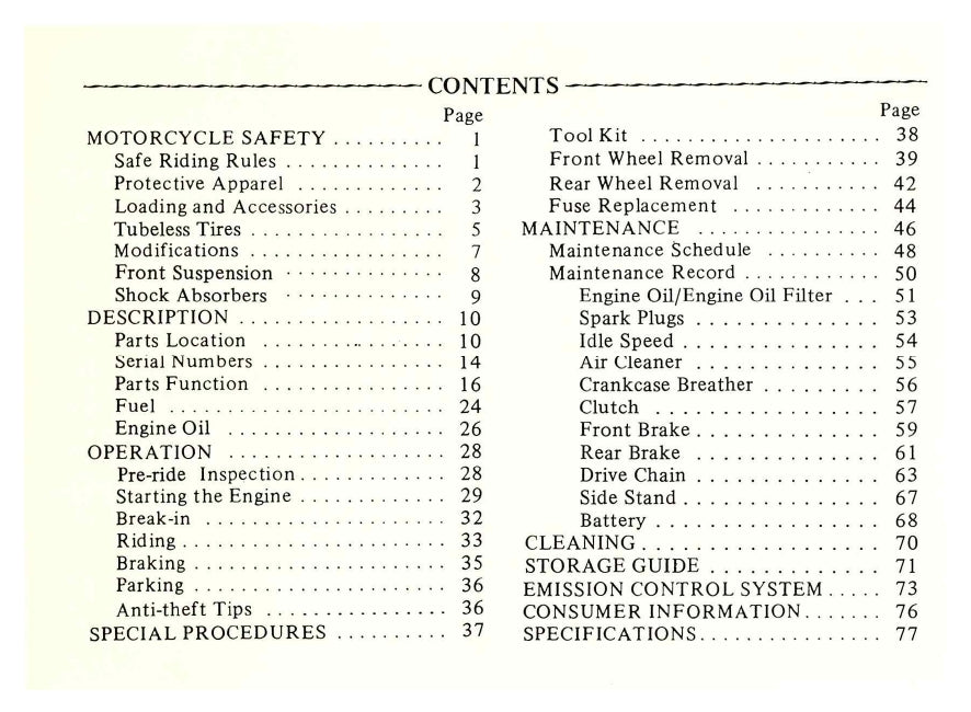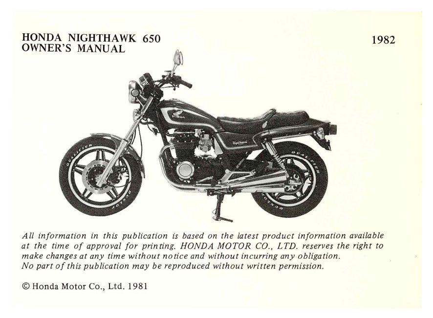 1982 Honda Nighthawk 650 Owner's Manual | English