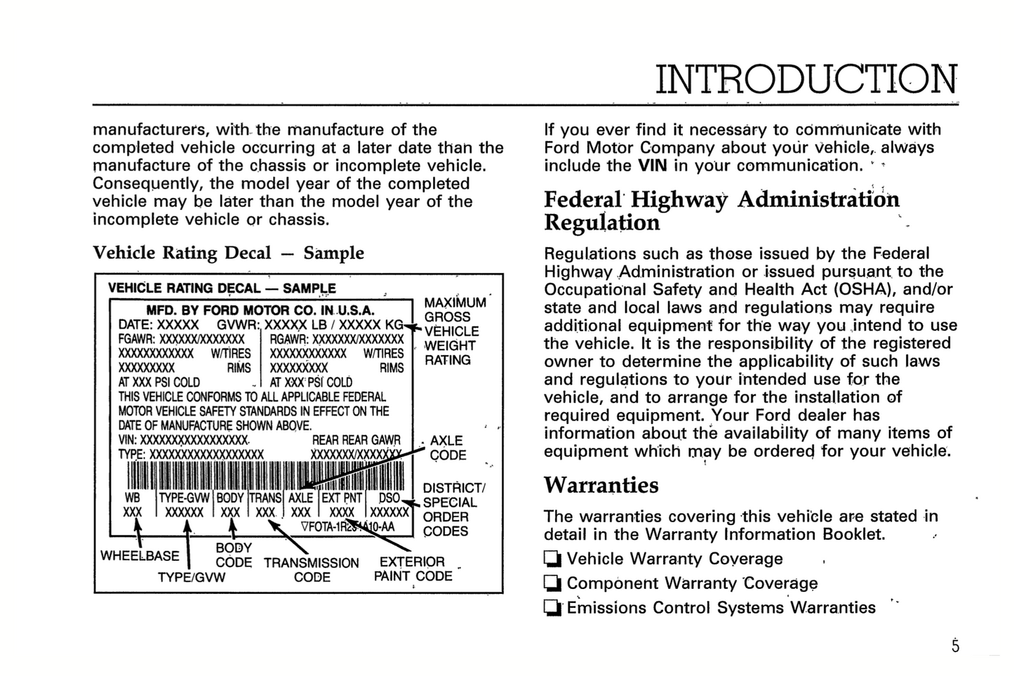 1994 Ford L-Series Owner's Manual | English