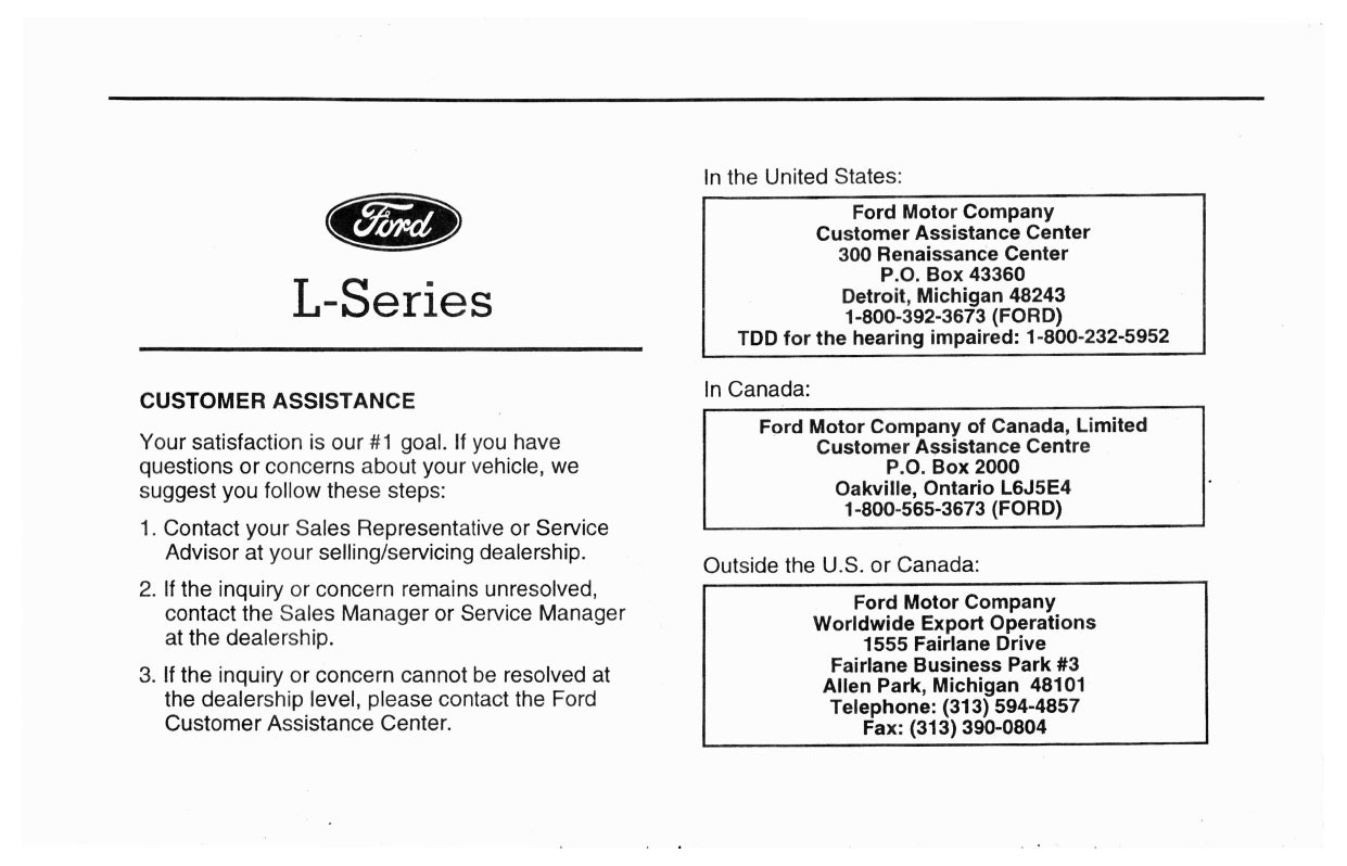 1997 Ford L-Series Owner's Manual | English