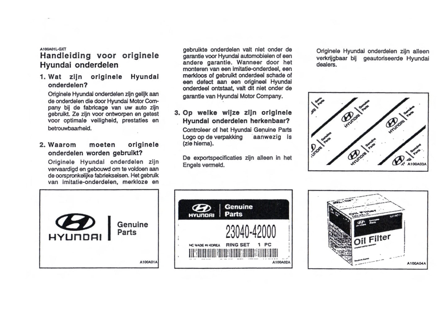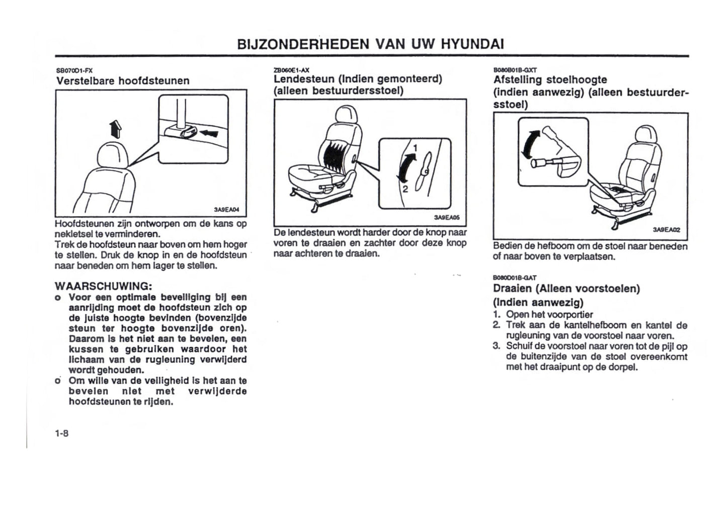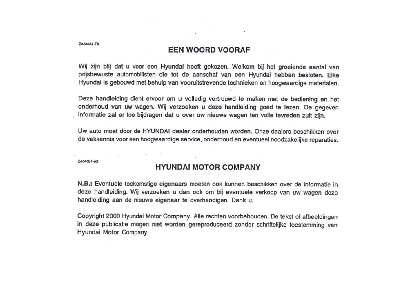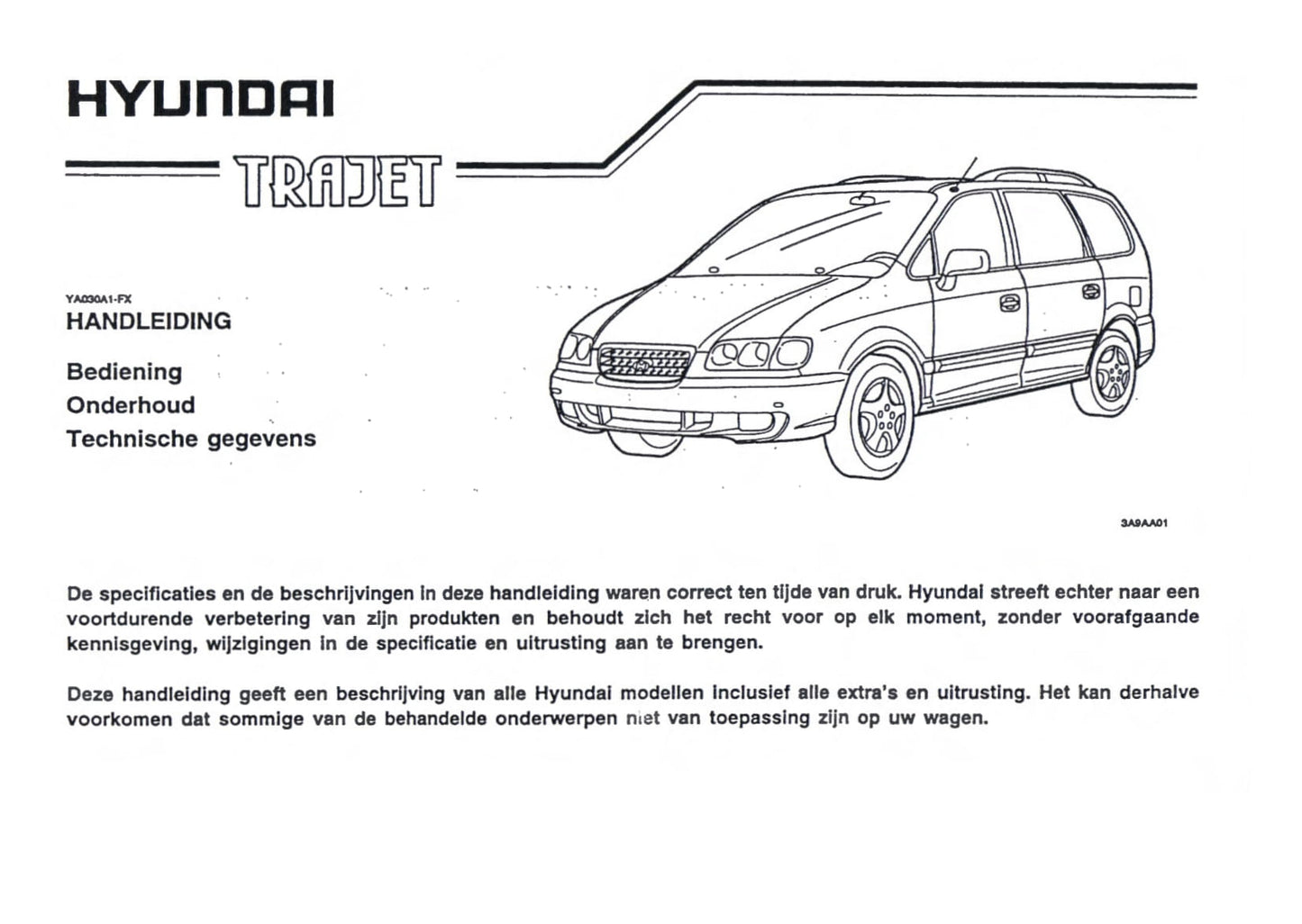 2000-2001 Hyundai Trajet Owner's Manual | Dutch