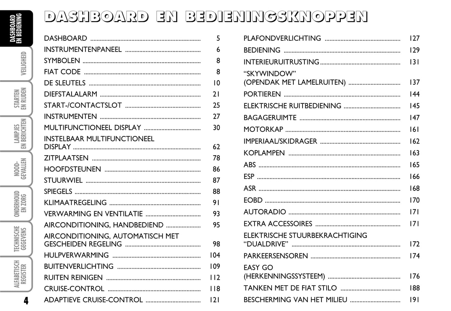 2003-2004 Fiat Stilo Owner's Manual | Dutch