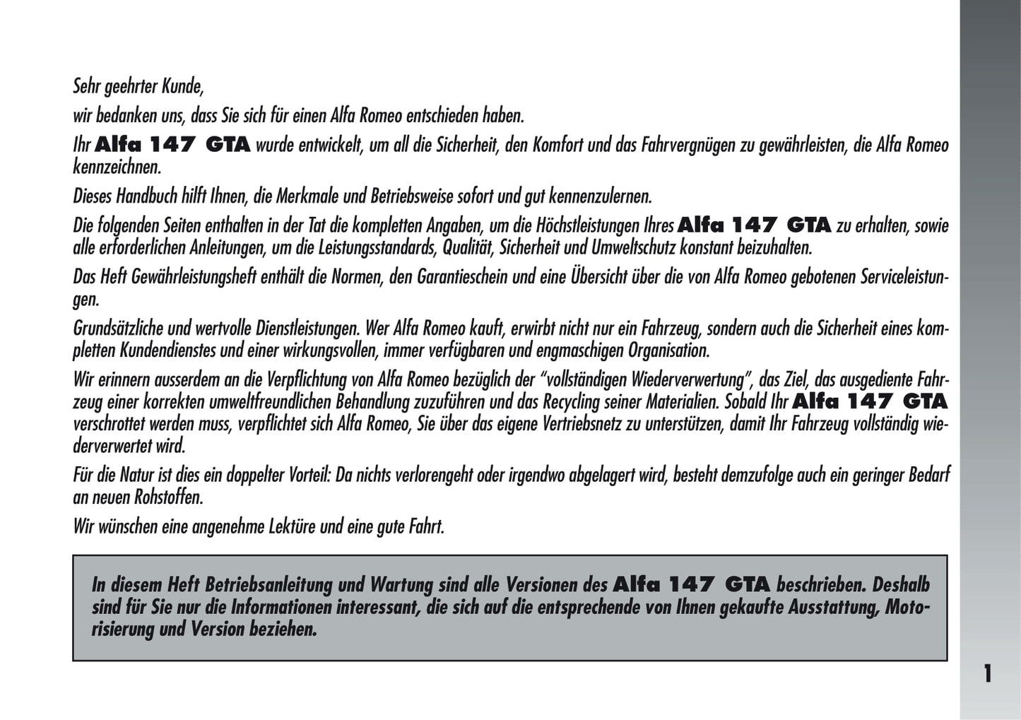 2005-2011 Alfa Romeo 147 GTA Owner's Manual | German