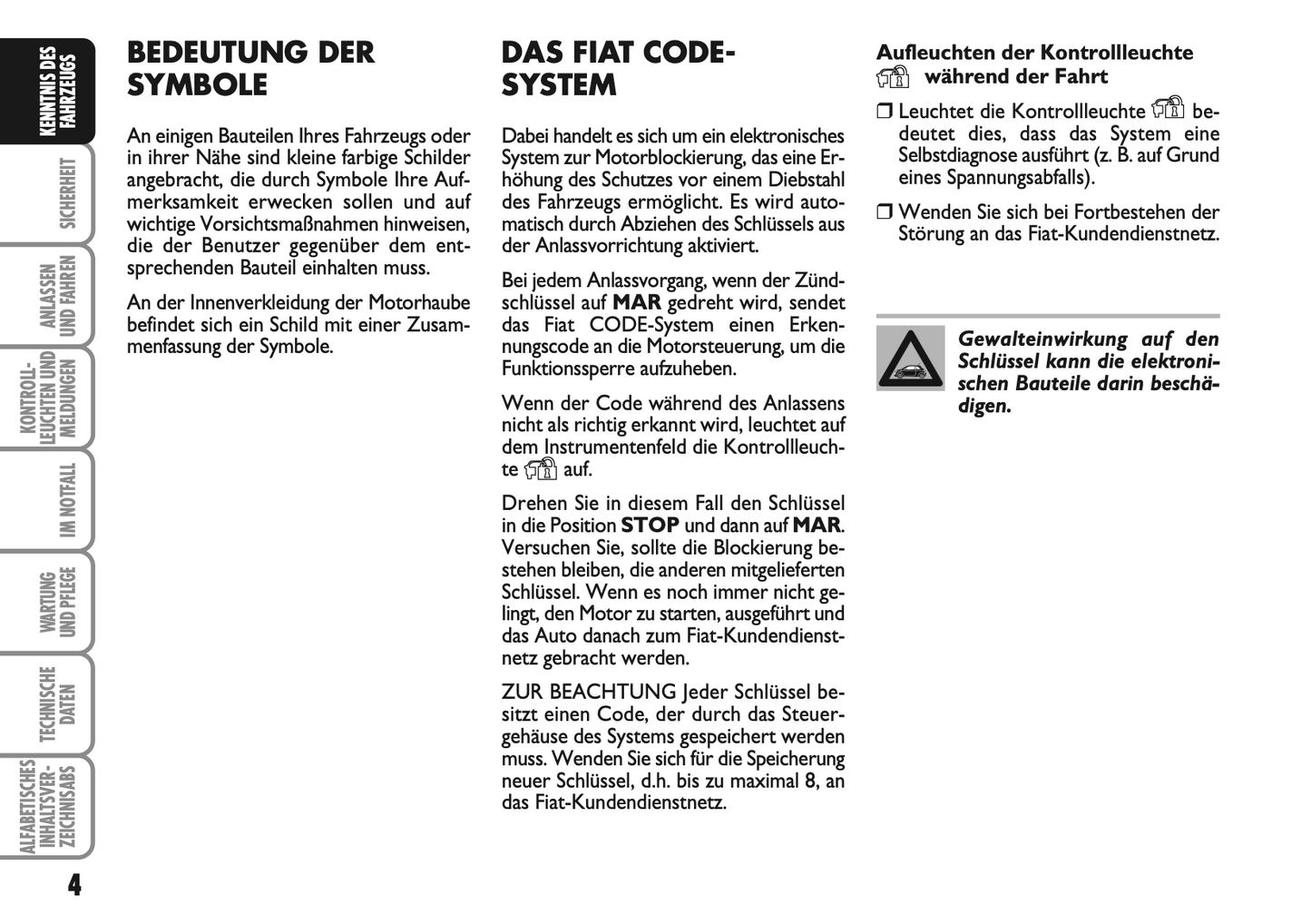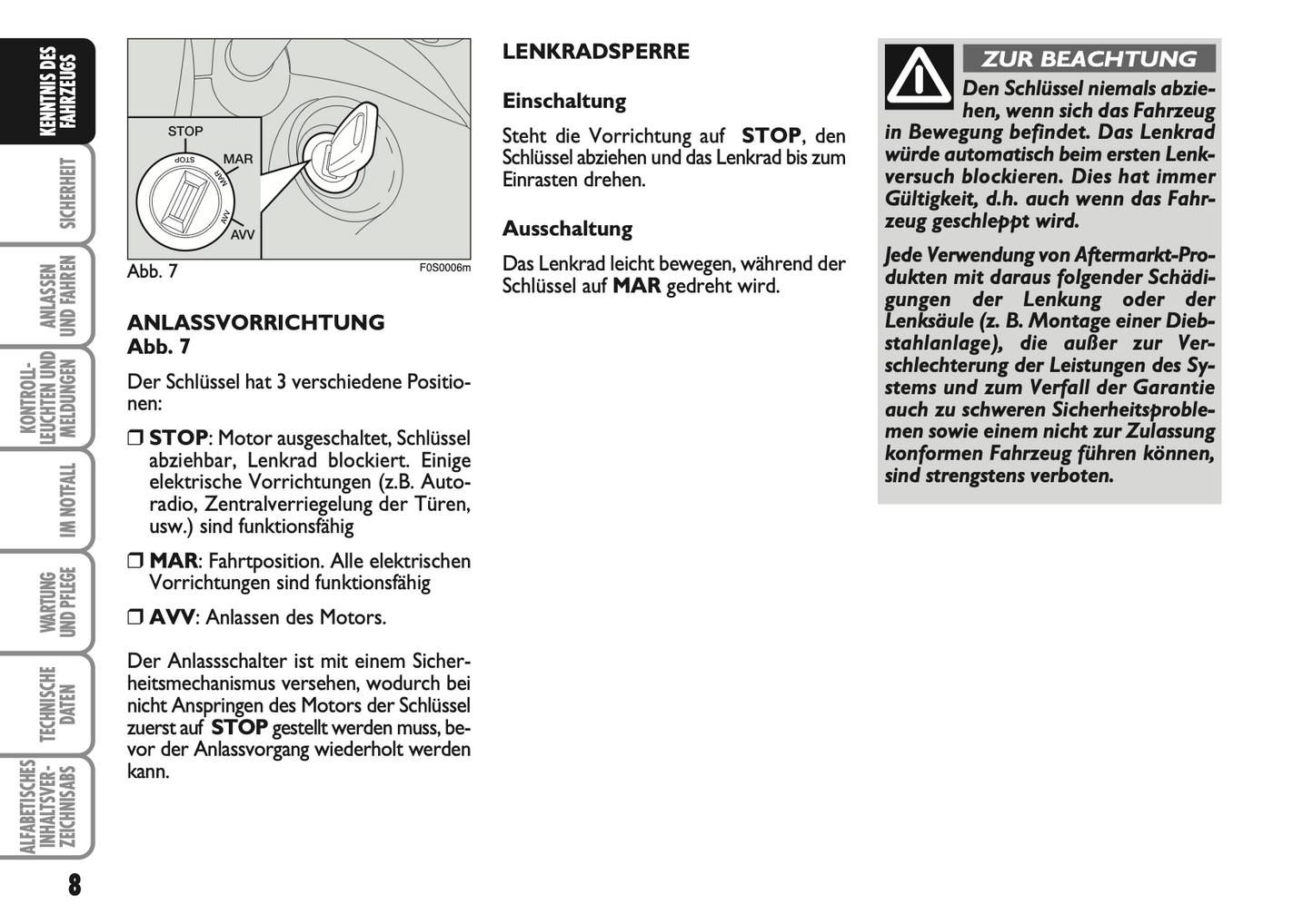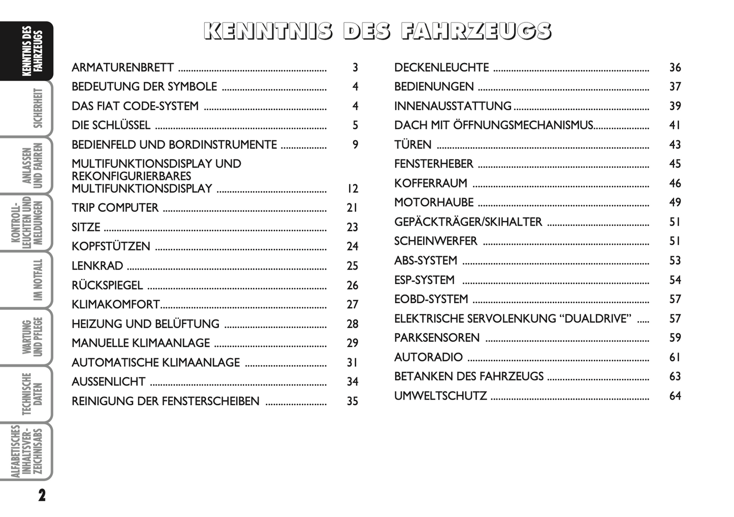 2007-2008 Fiat 500 Owner's Manual | German