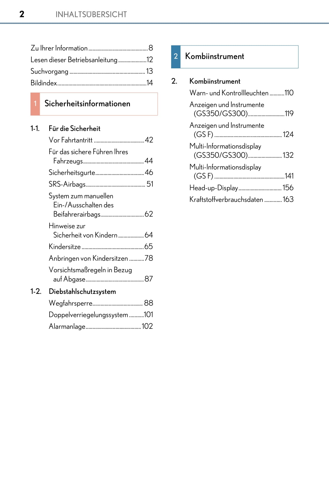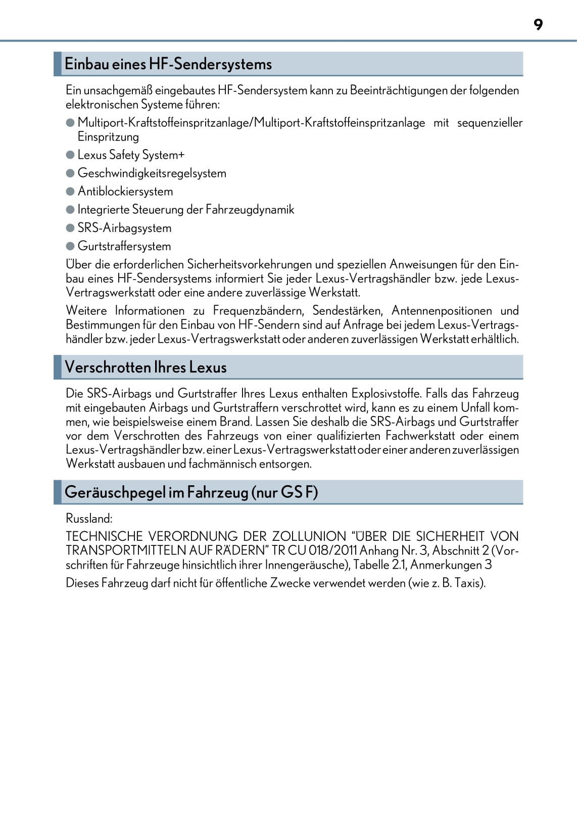 2017-2018 Lexus GS 350/GS F Owner's Manual | German
