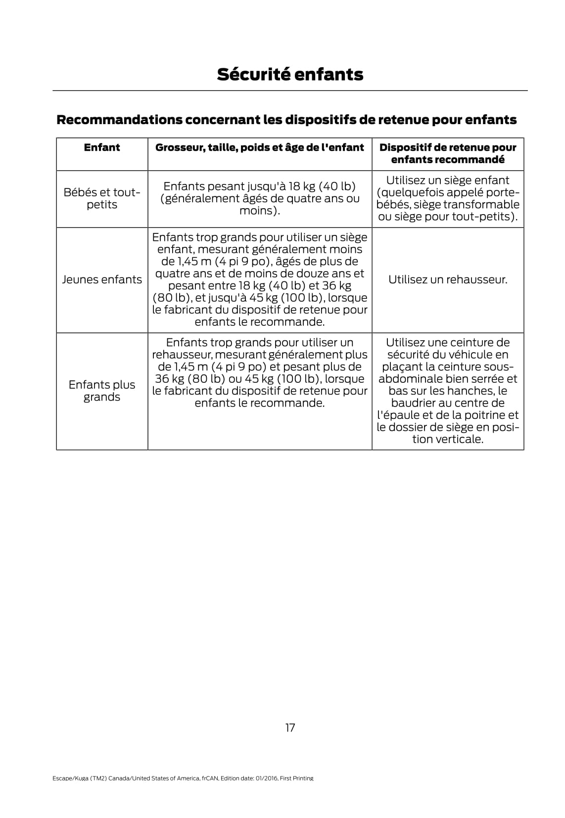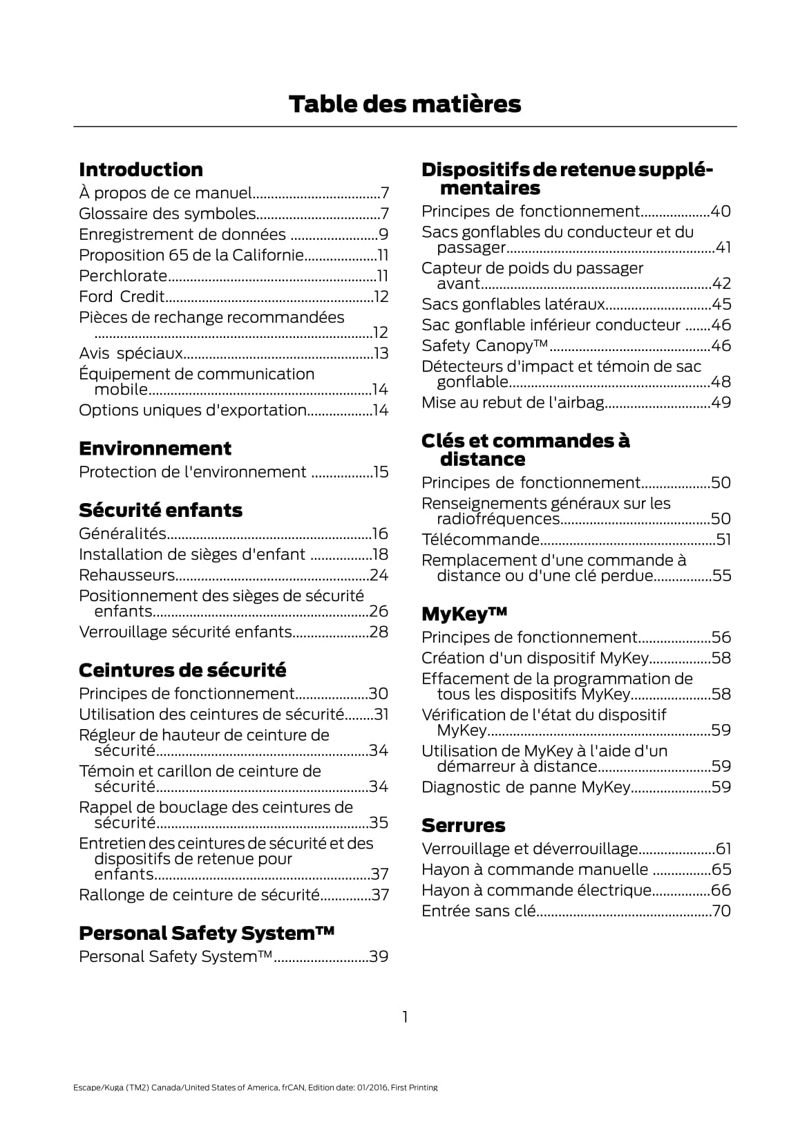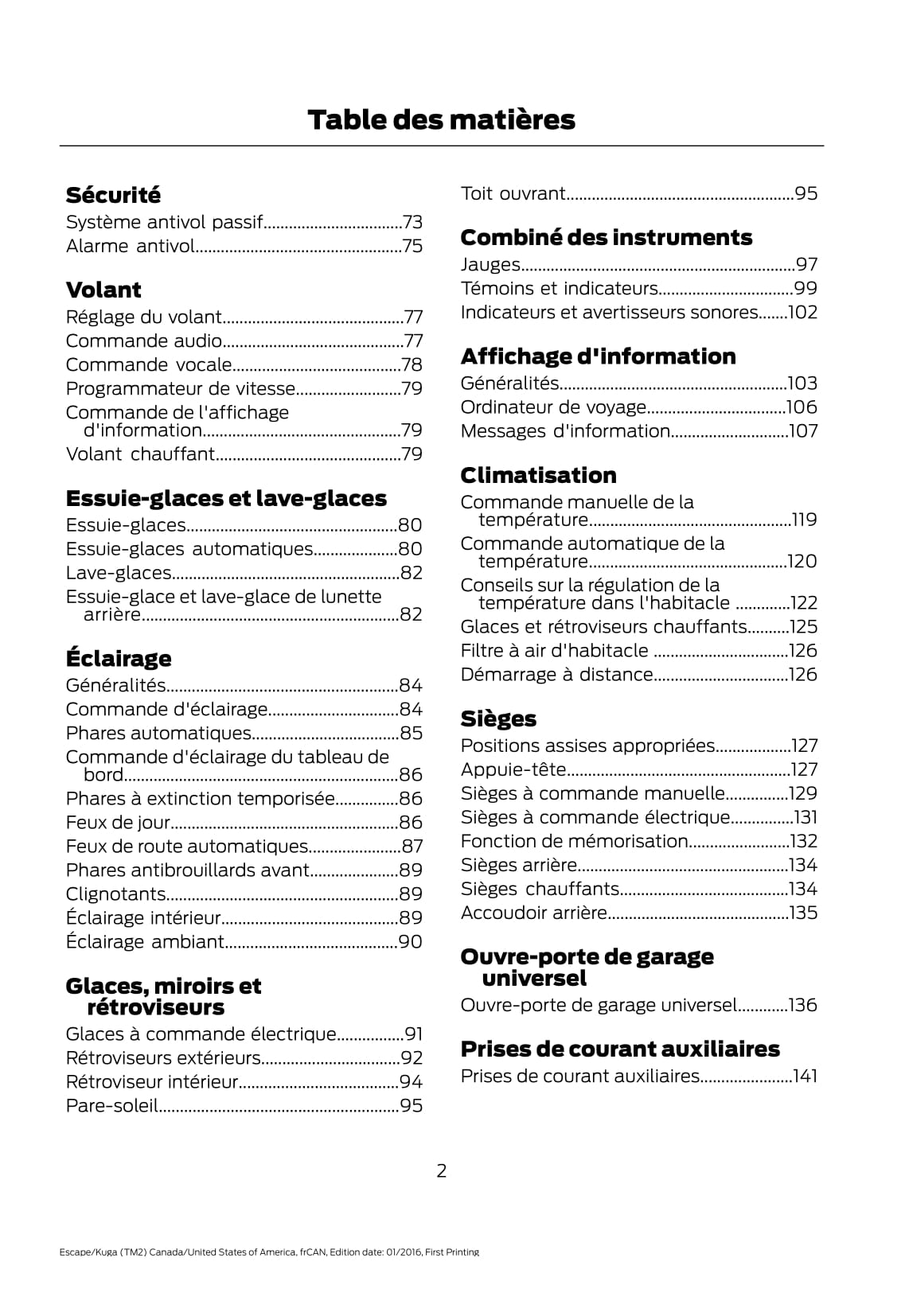 2017 Ford Escape Owner's Manual | French