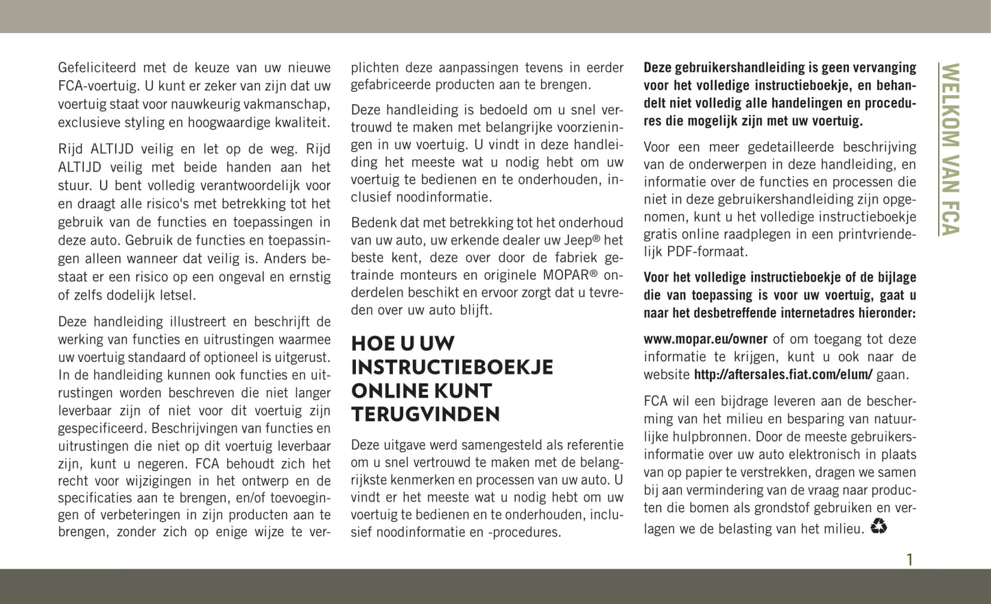 2018-2019 Jeep Wrangler Owner's Manual | Dutch