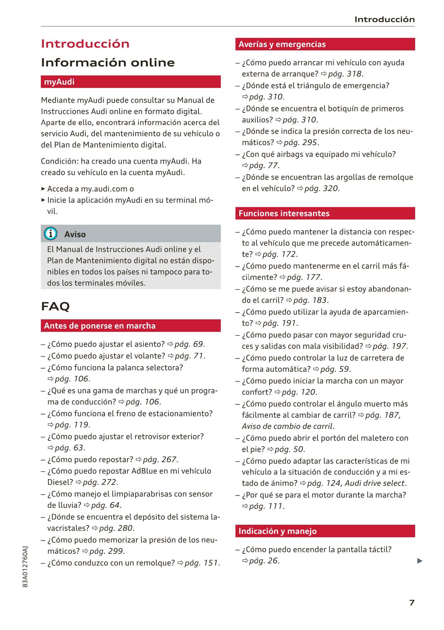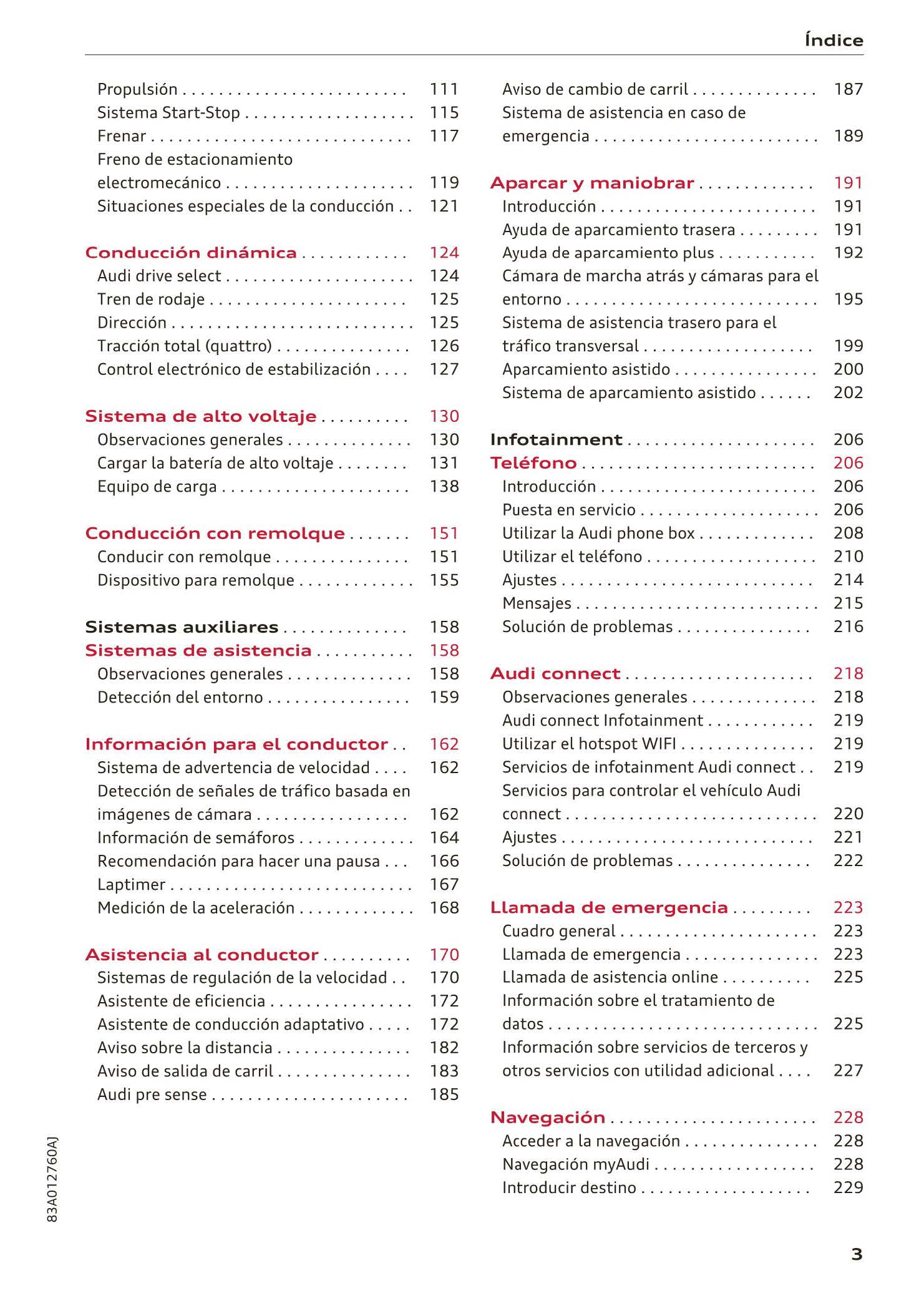 2018-2023 Audi Q3/Q3 Sportback/RS Q3/RS Q3 Sportback Owner's Manual | Spanish