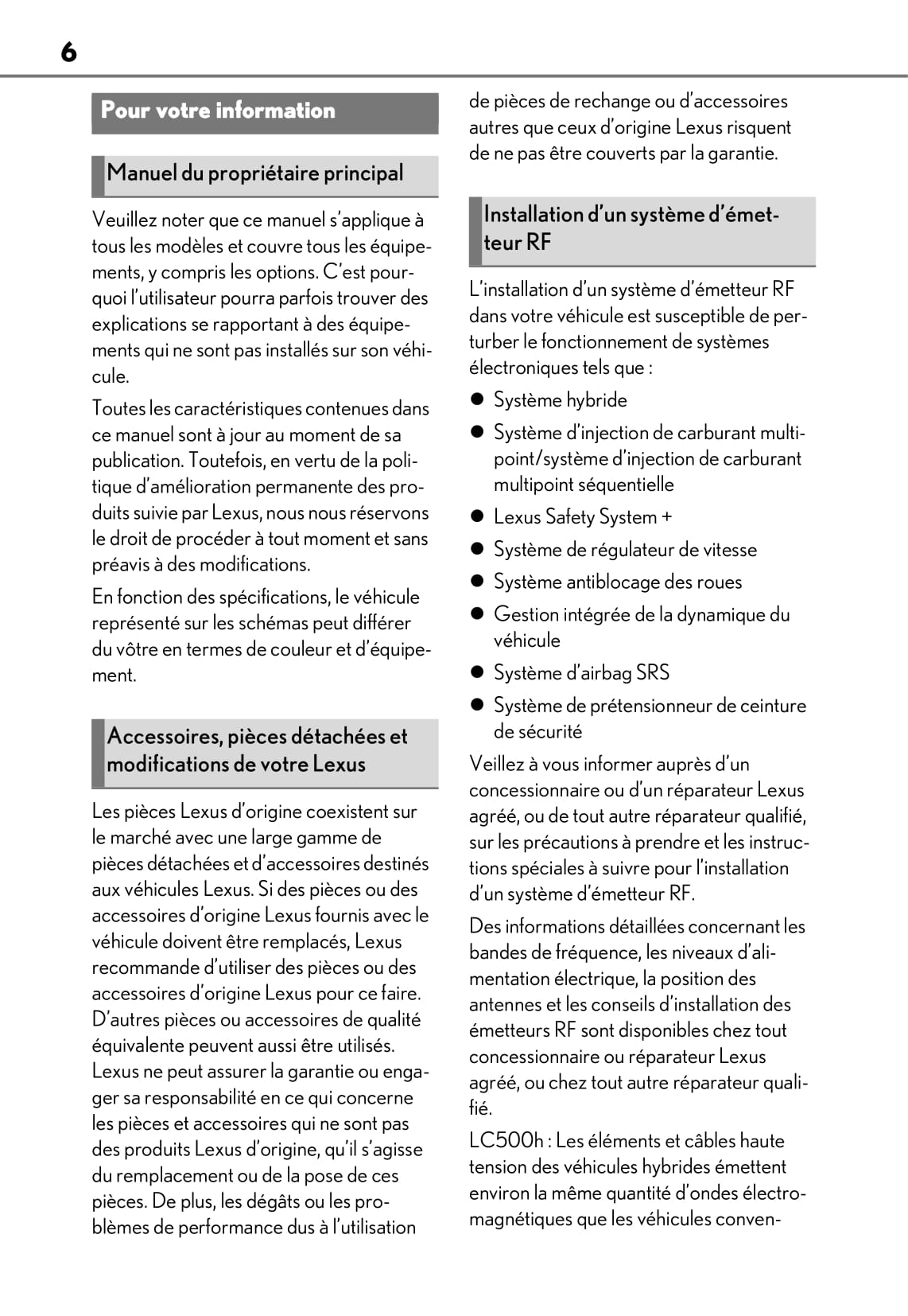 2019-2020 Lexus LC 500/LC 500h Owner's Manual | French
