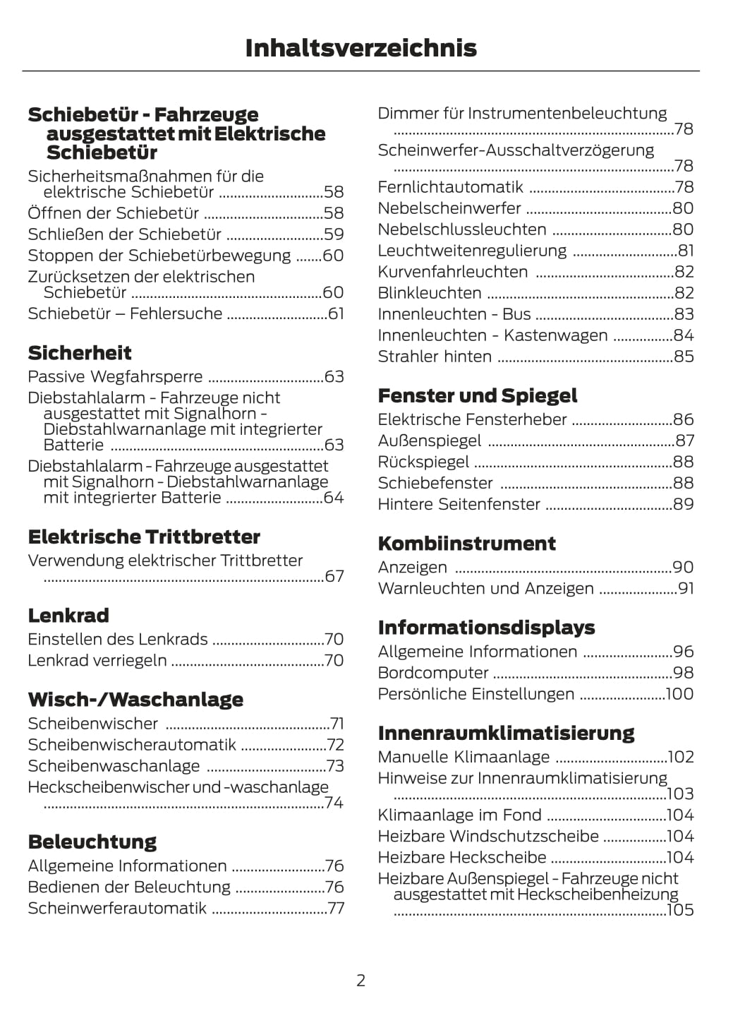 2020 Ford Transit Owner's Manual | German