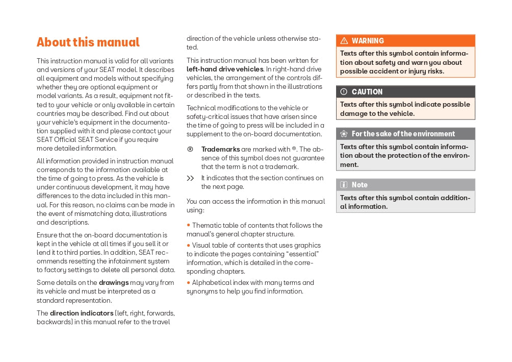 2022 Seat Leon/Leon Sportstourer Owner's Manual | English